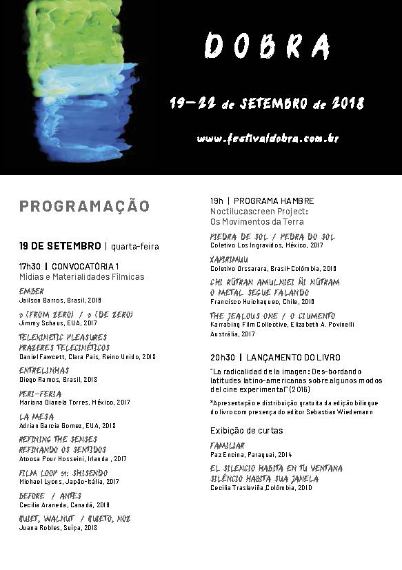 Dobra 2018 – Programação_Página_1 Publicado septiembre 17, 2018 en 583 × 827 en Hambre no IV DOBRA – Festival Internacional de Cinema Experimental, Brasil ← Anterior Siguiente →